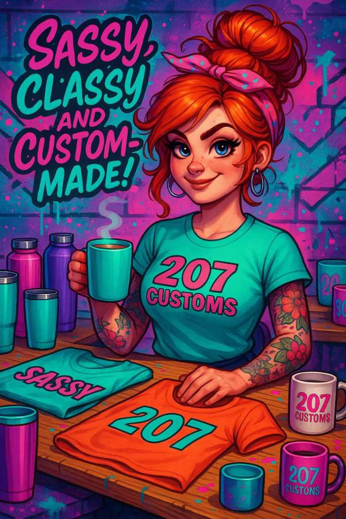 Let’s be real: I didn’t grow up dreaming of running a business while covered in epoxy and caffeine. Life handed me a lot of roles—mom, caregiver, chaos coordinator, multitasker extraordinaire—and somewhere along the way, I realized I needed a role just for me. A space to be bold. To create. To be unapologetically myself. That’s how 207 Customs was born. The Brand At 207 Customs – we don’t do boring. We do bold. We do sassy. We do loud. If you’re looking for soft neutrals and polite quotes about “living, laughing, and loving,” you’re probably in the wrong place (but I’ll still hug you on the way out). What we do make is: • Custom tumblers that speak fluent sarcasm (and yes, they’ll keep your iced coffee alive during dance recitals and grocery trips). • T-shirts and sweatshirts that say what you’re thinking (without getting you kicked out of the PTA). • Personalized gifts that are as unique and spicy as the people you’re buying them for. • And a whole lot of handmade magic, because everything that leaves my workspace has been made with heart, hustle, and usually a soundtrack of chaos in the background. Everything I make is designed to bring joy, laughter, or a little attitude into your everyday life. Because honestly, we’re all juggling too much, and we deserve to have things around us that make us smile—or snort-laugh. That counts too. The Life Behind the Brand Let me give you a peek behind the glitter curtain: I’m a mom first, business badass second, and everything else somewhere in between. My days are packed with snacks, school runs, and last-minute Walmart runs (because I definitely didn’t forget poster board again, right?). I squeeze in work in the margins—during naps, late nights, and that golden hour when everyone’s finally quiet for five minutes. This business is my outlet. It’s where I get to play with color, throw sass around like confetti, and connect with other people who are just as tired but still out here doing the damn thing. I may not have it all figured out (who does?), but I do have a wild amount of passion, a glue gun that never sleeps, and a dream that keeps growing—just like the pile of laundry in my hallway.