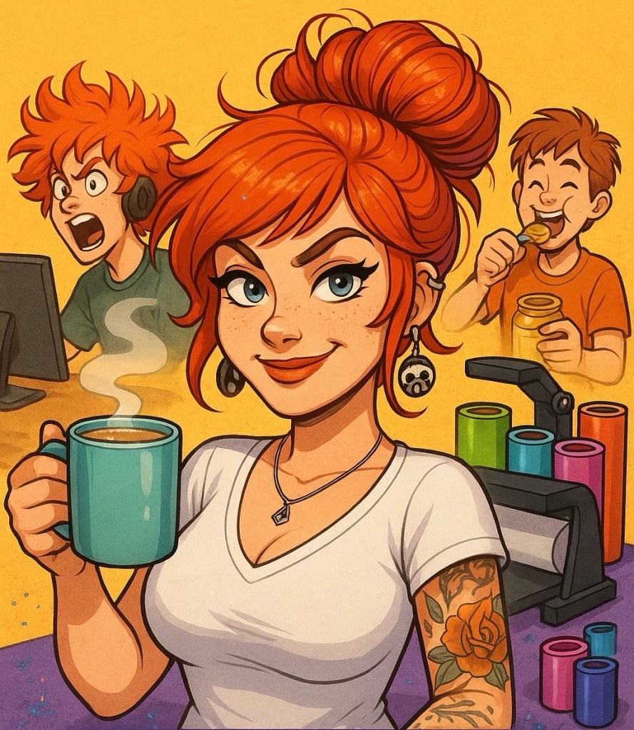 I woke up, caffeinated aggressively, and immediately made questionable life choices. (Including but not limited to trying to epoxy 7 cups, run 3 heat presses, and referee two teenagers fighting about Wi-Fi… simultaneously.)