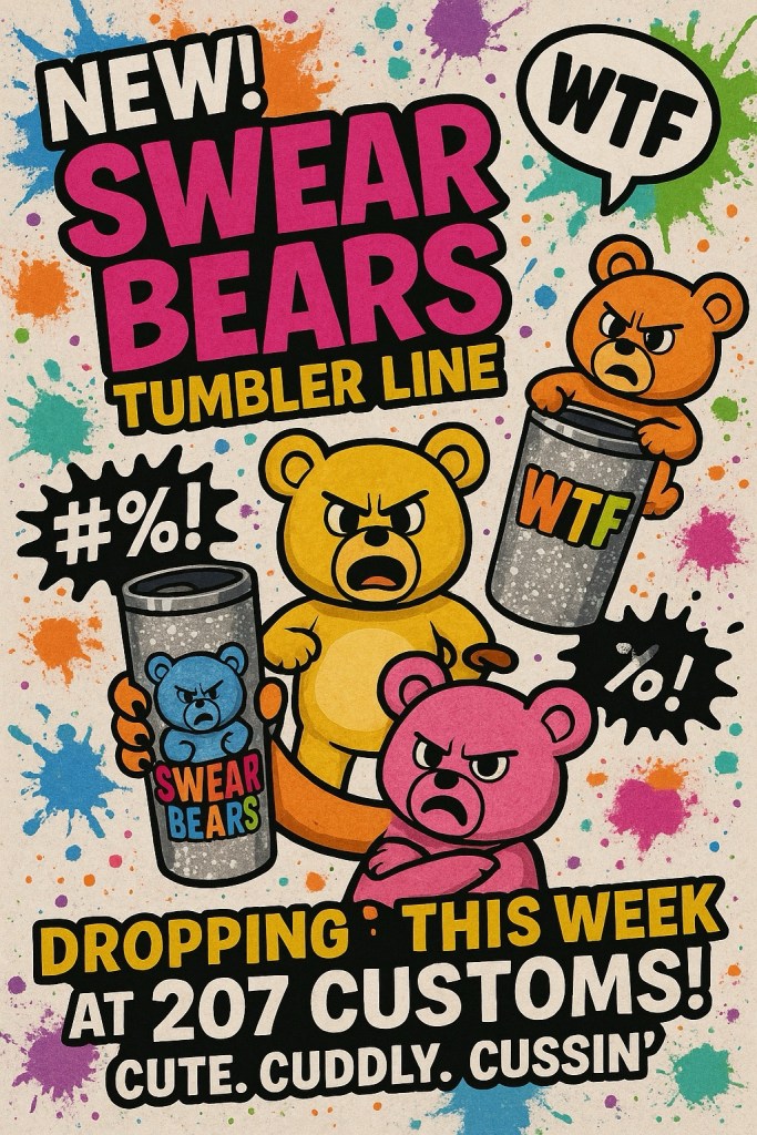 I’ve created a brand new tumbler line that screams everything we wish we could say at work, school pickup, or PTA meetings—with the sweetness of a cartoon bear and the rage of a feral gremlin.